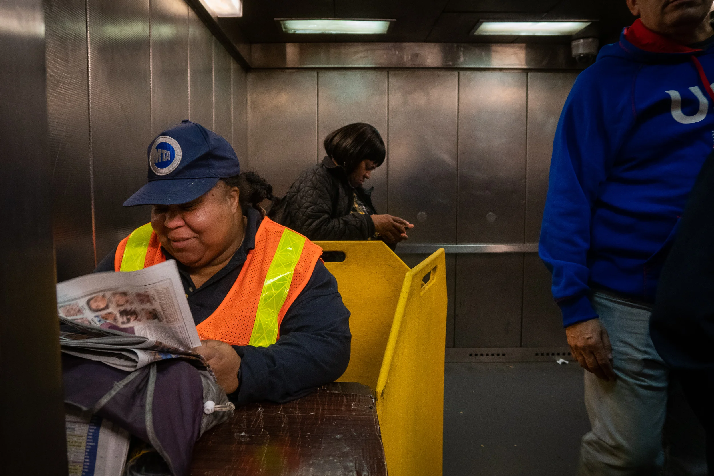 Three yellow barriers keep a clear line between her and the passengers; a shabby wooden desk and a worn dark-gray plastic chair make her working space. All standard issue for the operators manning five elevators in uptown Manhattan: 181st and 191st Street stations for the 1 train; 181st Street and 190th Street for the A train; 168th Street for both. William’s prefers the 181st Station – it’s the easiest for her to get to from her home in East Harlem, where she lives with her sister and her nieces.